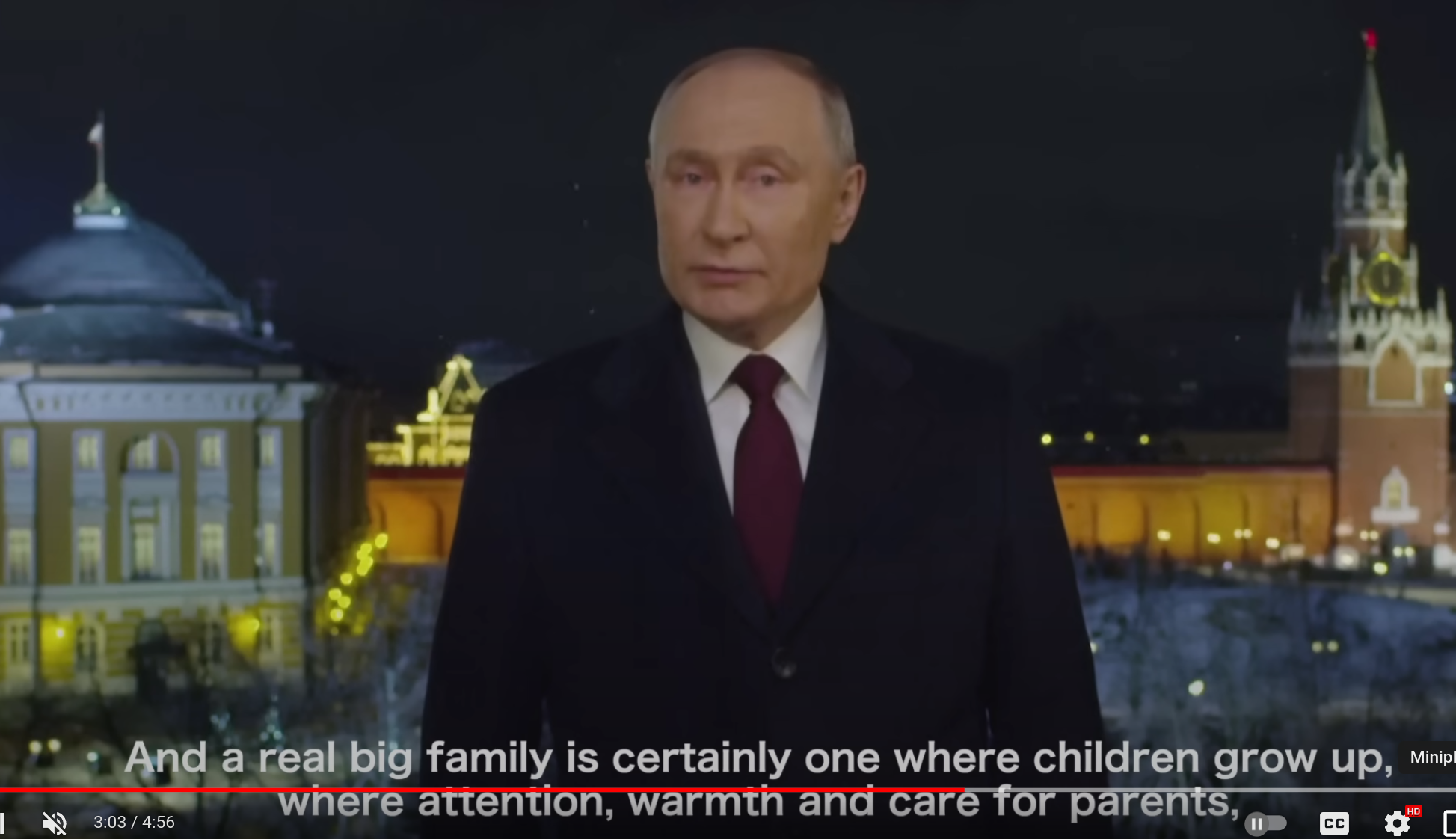 Discursul cu ocazia Noului An a fost folosit de președintele rus, domnul Putin, pentru a sfida încă o dată Occidentul și valorile sale. Cu ocazia Noului An 2024 Putin a vorbit despre familie, despre națiune și copii, a ignorat comunitatea LGBTQ +/- nepomenind „valorile și drepturile” acesteia. În loc să apară înconjurat de homosexuali cu protuberanțele frontale dezgolite dl. Putin a apărut într-un clasic costum negru, o îmbrăcăminte deloc incluzivă și în răspăr cu „valorile” estetice ale comunității LGBTQ +/-. Totuși, domnul Rose Montoya și-a exprimat speranța că va fi inclus în discursul de revelion al președintelui rus anul viitor 2025. Domnul Rose Montoya a mai spus că dl. Putin ar trebui să adopte treptat un stil vestimentar mai incluziv, renunțând întâi la cravată iar, mai apoi, ar trebui să-și coloreze părul întâi în nuanțe de portocaliu pentru ca, mai apoi, să adopte culori cu adevărat îndrăznețe precum mov, roz și albastru.